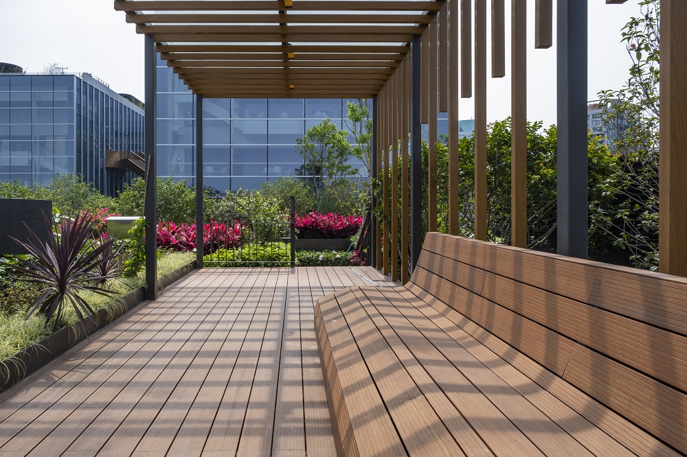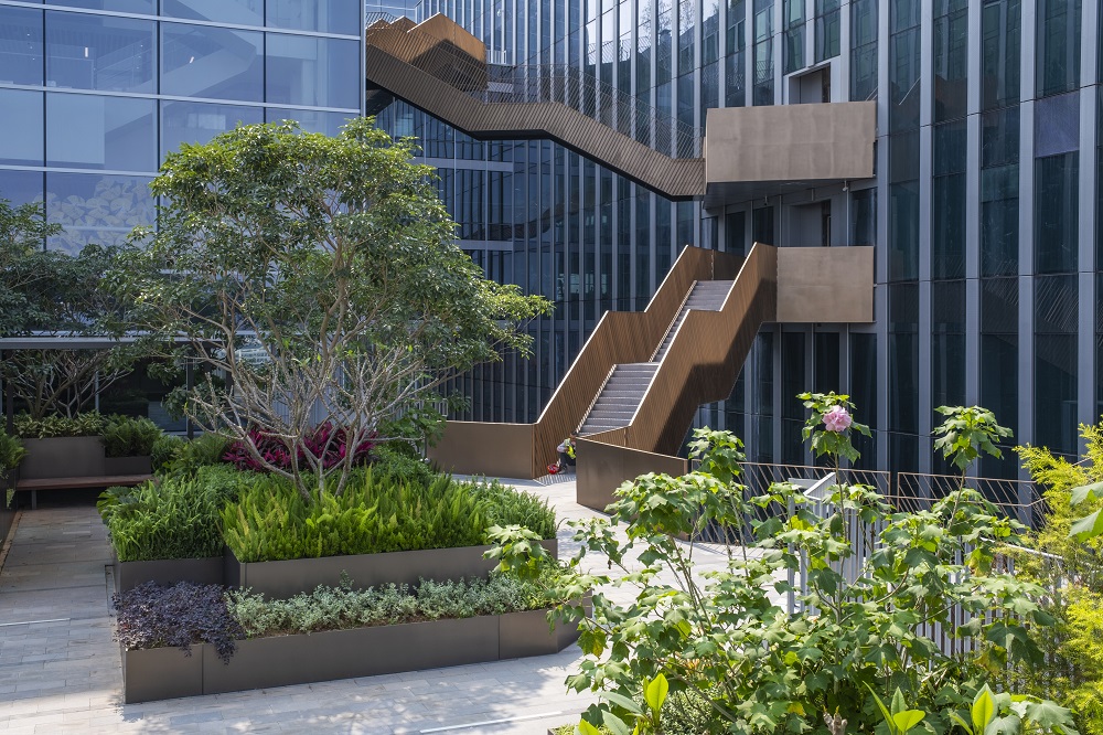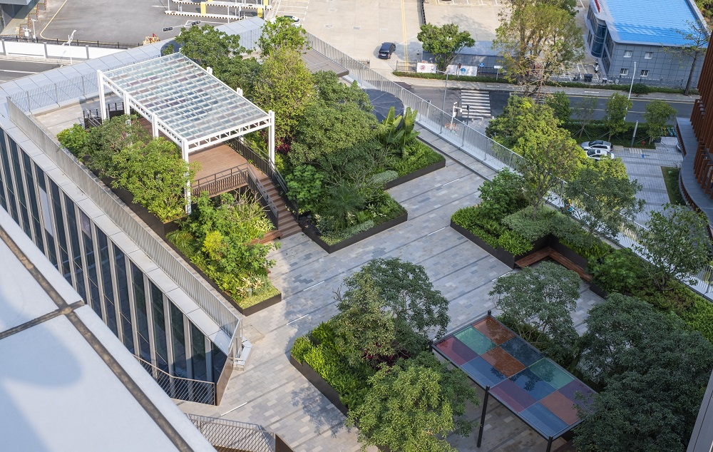 深港科技創新合作區深方園區首批項(B105-0042、B105-0119)園林景觀工程位于深圳市福田保稅區深港科技創新合作區深圳園區B105-0042、B105-0119地塊,項目綠化面積35620m2。本項目包括首層廣場,多層屋頂花園、空中連廊等。項目共有11層屋頂花園,栽植了多種常綠喬木,有效償還了大自然的生態面積,并為人們開拓了更多的休閑空間。
